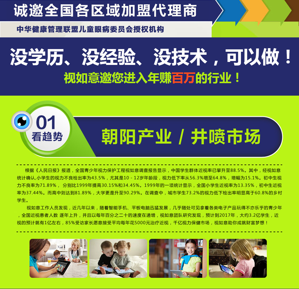 视如意公司自2014.8.8日创办以来,始终坚持诚信,正直,专注,创新的理念;奉行言行一致,信守诚若,止于至善,奉献社会的价值观,致力呵护全民眼健康。